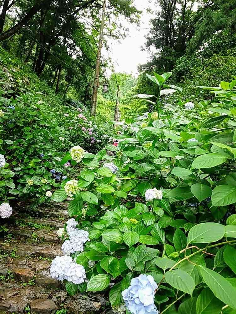 六角堂から!山頂の太平神社へ続く1000の石段の両側に咲く紫陽花が見頃を迎えていました!