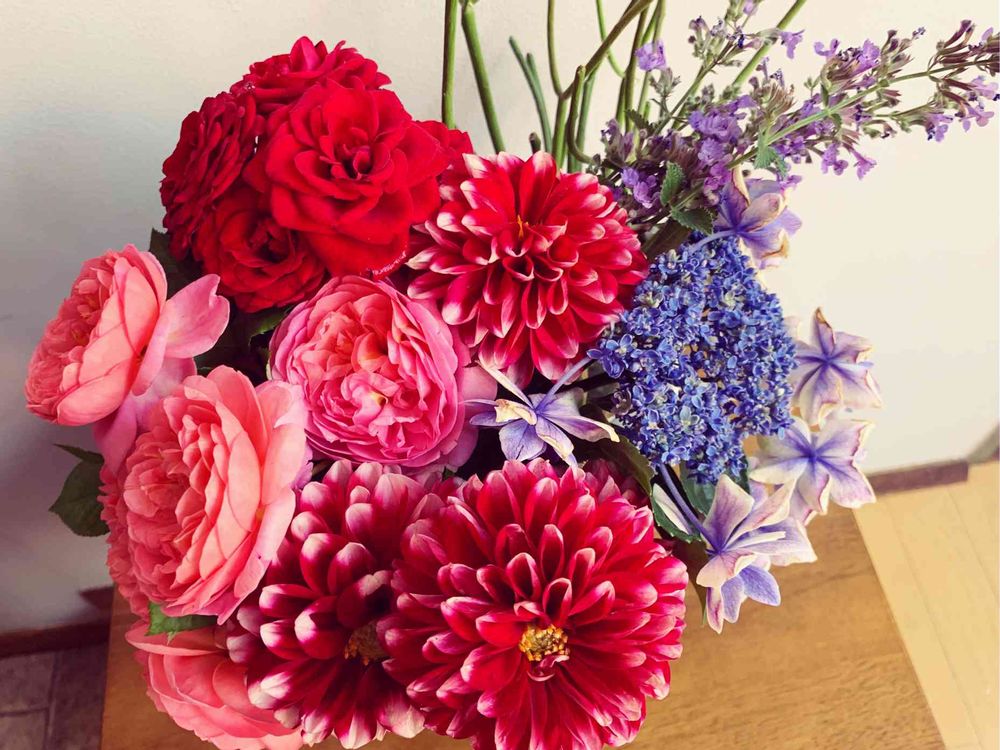 ダリアがどんどん開くので、せっせと花柄摘みです❤