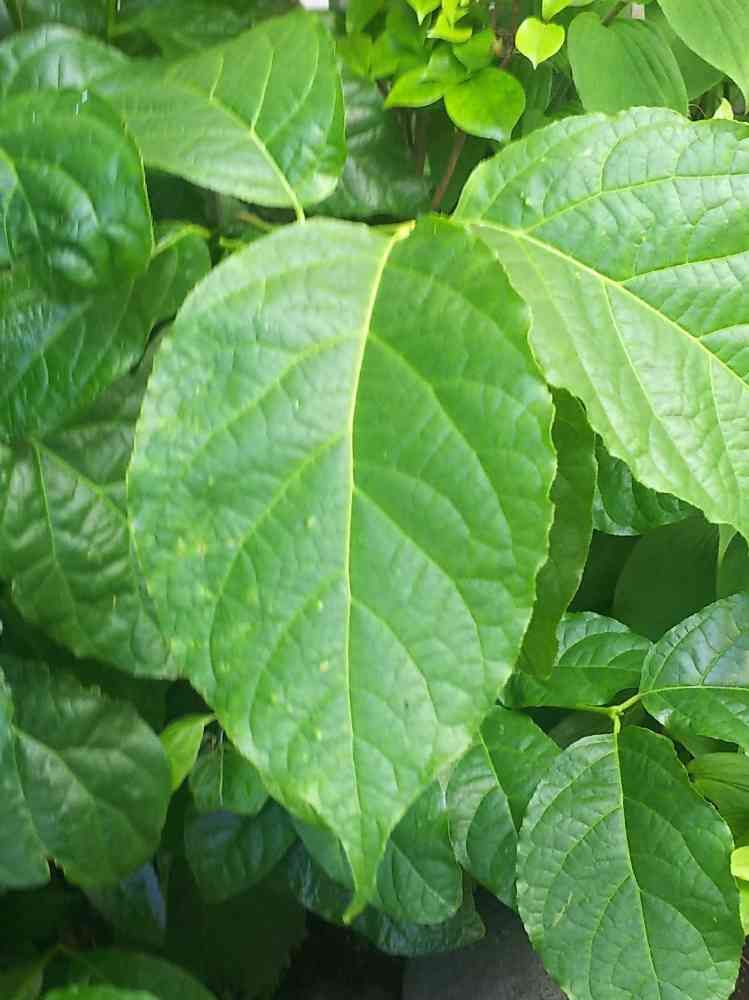家の猫の額のような庭の花木です。20センチ程の大きな葉っぱ。