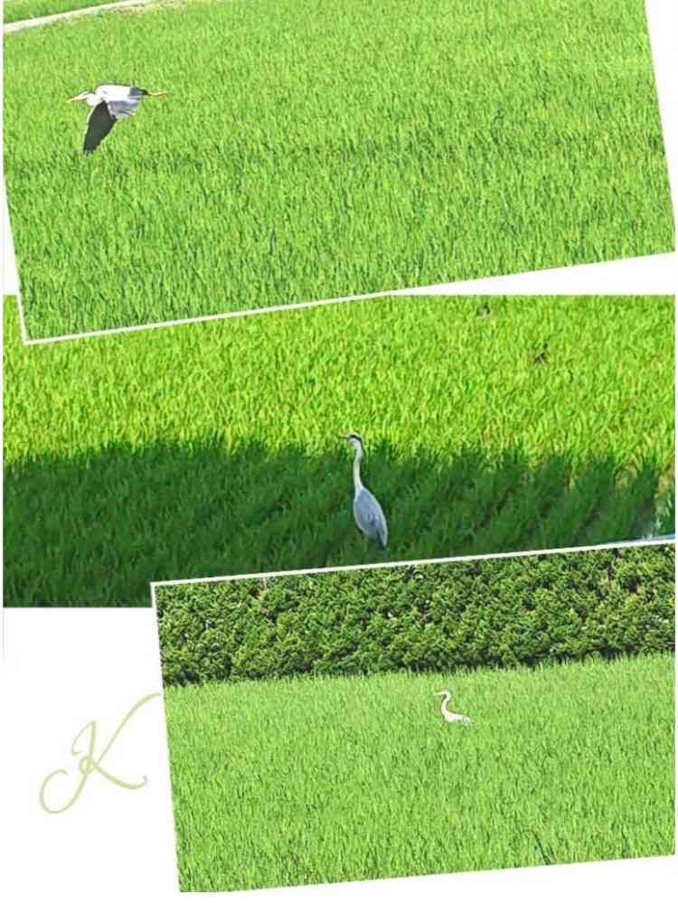 田んぼ❓に遊びに来ているのはアオサギさん🦢