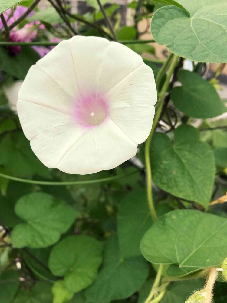 昨年とれた種から白い朝顔。他の品種と比べると弱いので、あまり花数がなくウチではレアです。