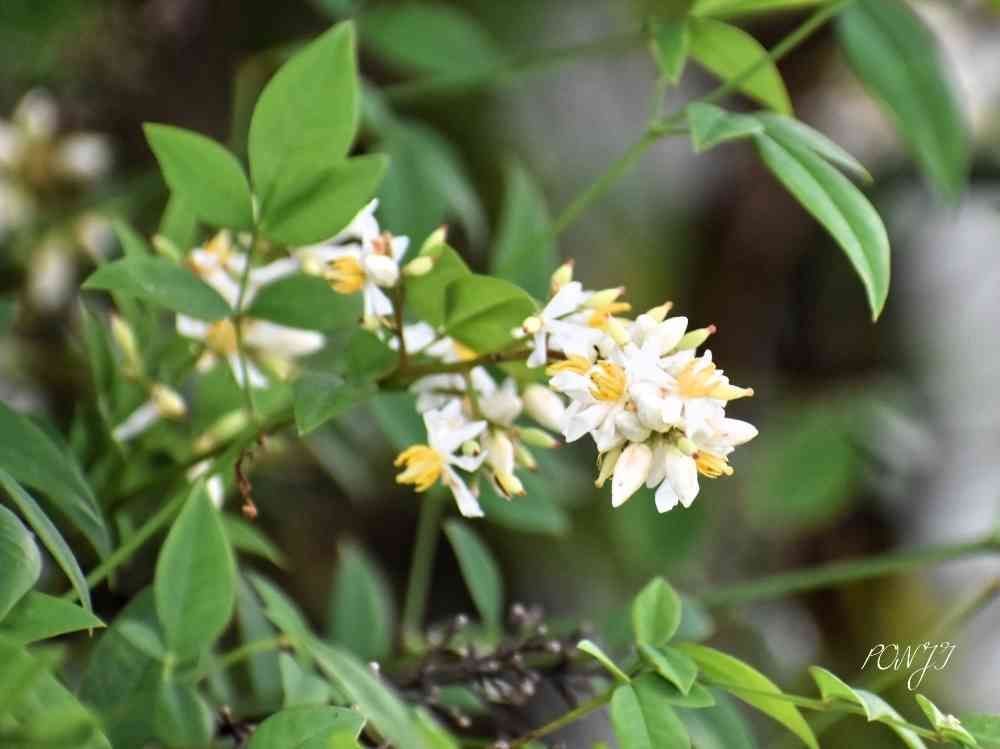 まぁ…〜PONJIさんの🏠の庭にナンテンの花が!
