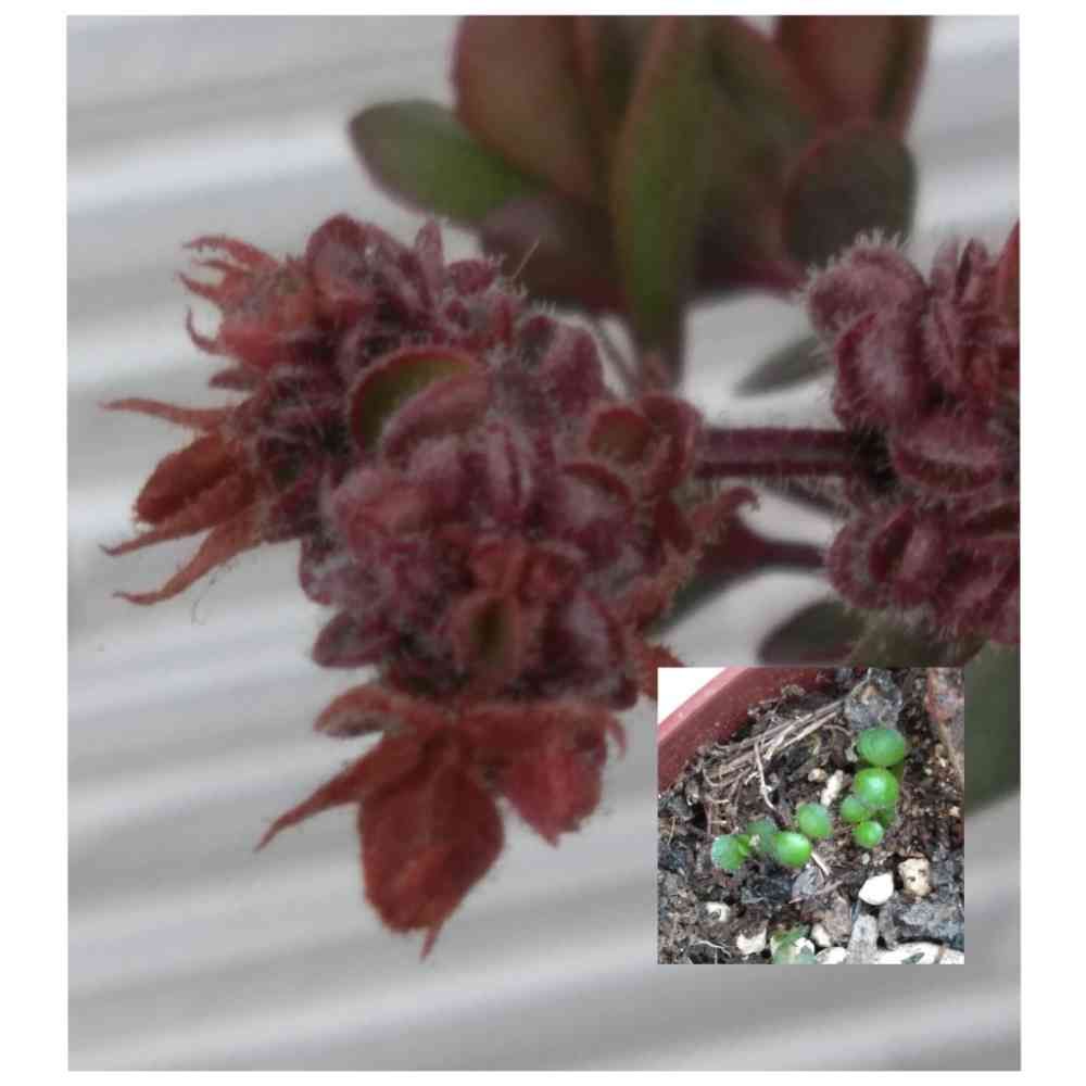 可愛い花の後にできたモニョモニョを土にパラッと蒔いたら、いつの間にか緑のおチビさんが!