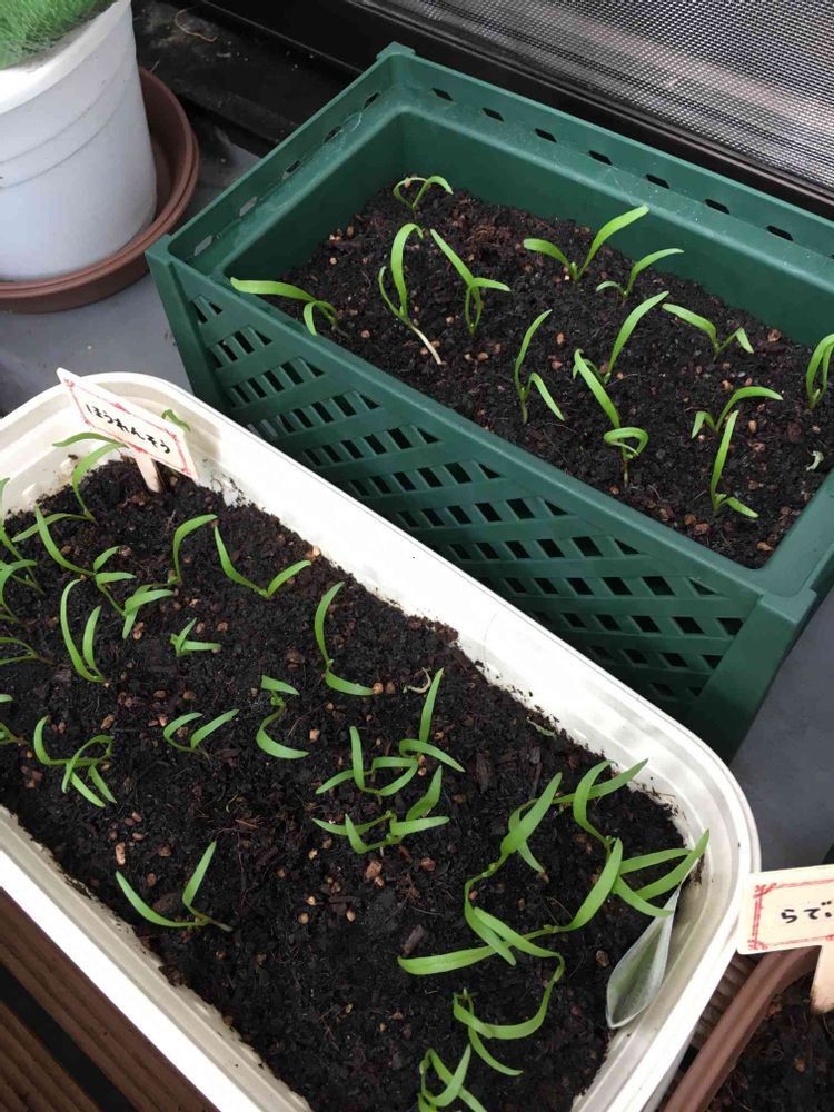 そろそろ間引きしたほうがいいのかな?本葉がもう少し伸びてからのがいいのかな?