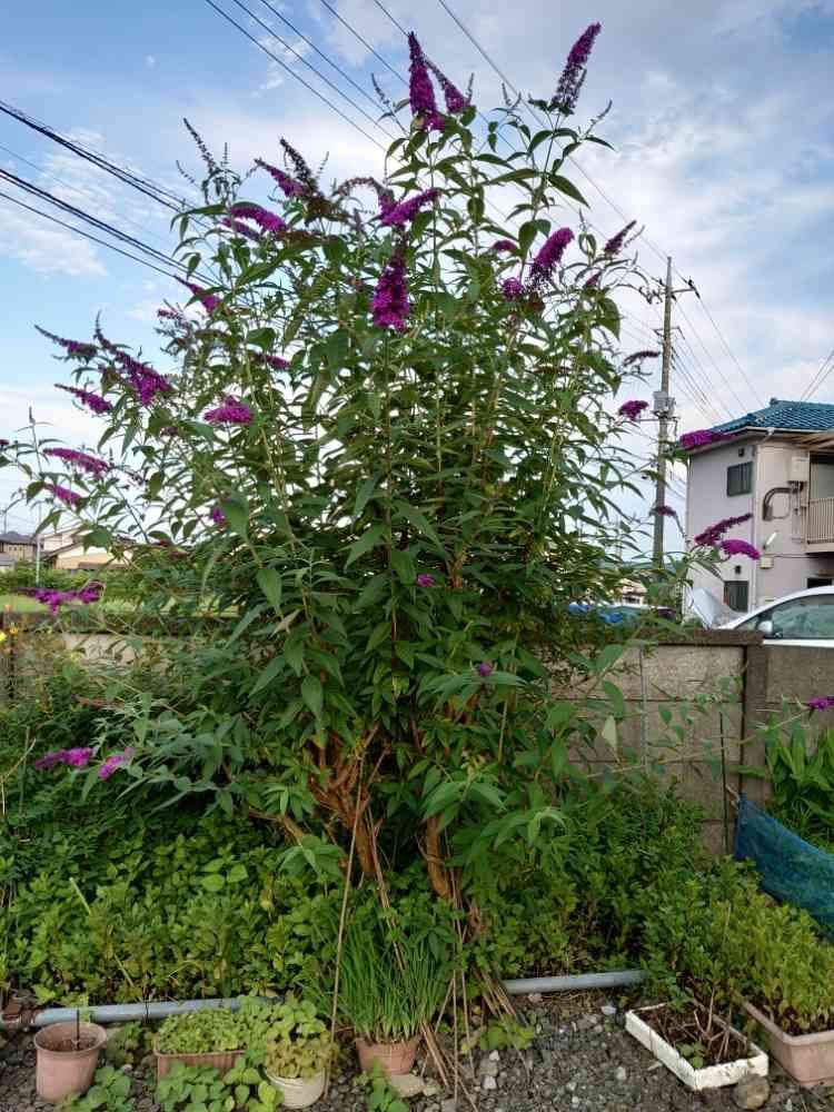 自宅から少し離れた駐車場の敷地内に、なんと巨木ブッドレア様が。3mはある。
