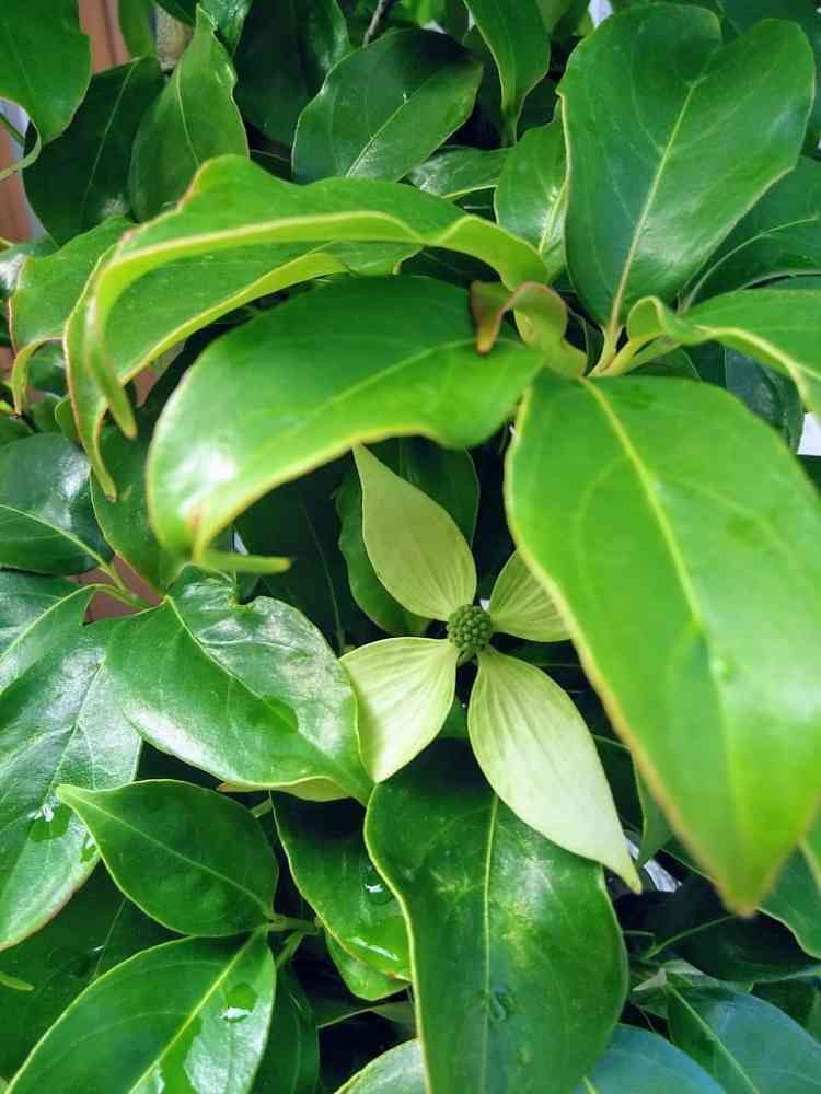 艶々の葉っぱにひっそりと白いヤマボウシ😍😍😍