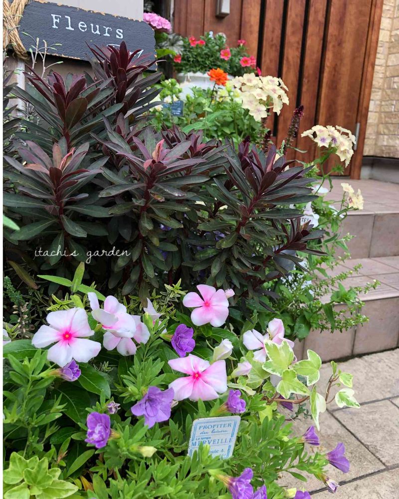 昨年10月から植えっぱなしのユーフォルビア&コロキアはそのまま残して、夏秋のお花に入れ替えて楽しんでいます🌸