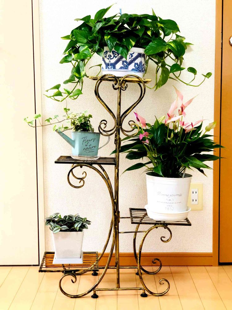 こんばんは。観葉植物もさることながら、植木鉢や花台も素敵ですね。
