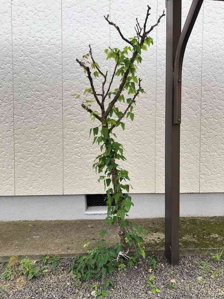 ちなみに、巻き付かれているのは、枯れたけど、ノササゲが巻きつく為に残してある山椒の木。