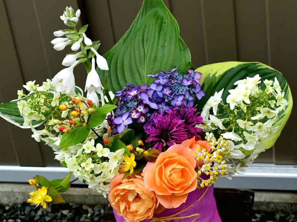 今から果物セットと共にこの自家製花束を届けに行きます。