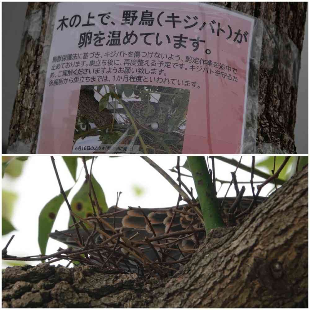 巣がある為に、伐採手入れが中断したので雛が孵ったらきちんとします❗という、市か区の張り紙と思います。