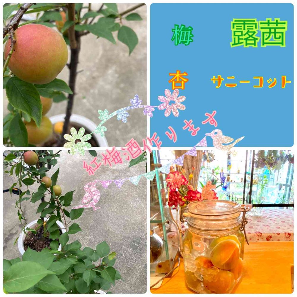紅い梅酒が作れるというので、昨年から育ててます。恐らくまだ実を付けるべきではなくて💦木を育てるべきだと思うけど、今年10個実り、7個収穫。触るとポトンと落ちるまで待ちました。真っ赤では無いけど😅