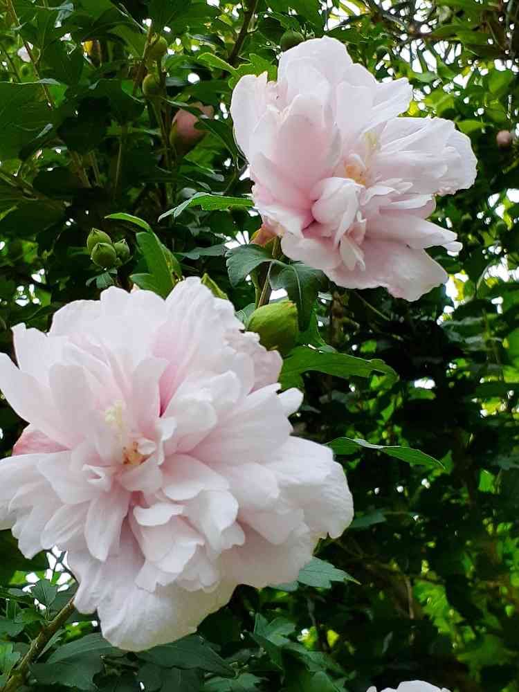 八重のムクゲは珍しいですね。優しい色合いで和みます💝