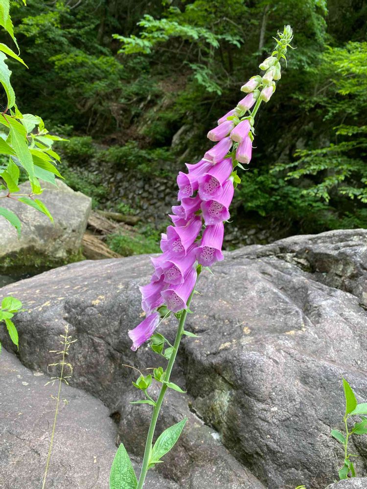 川の真ん中にジギタリスが忽然と咲いていました。近くの沿道にも咲いていたから、鳥が運んだのかな?