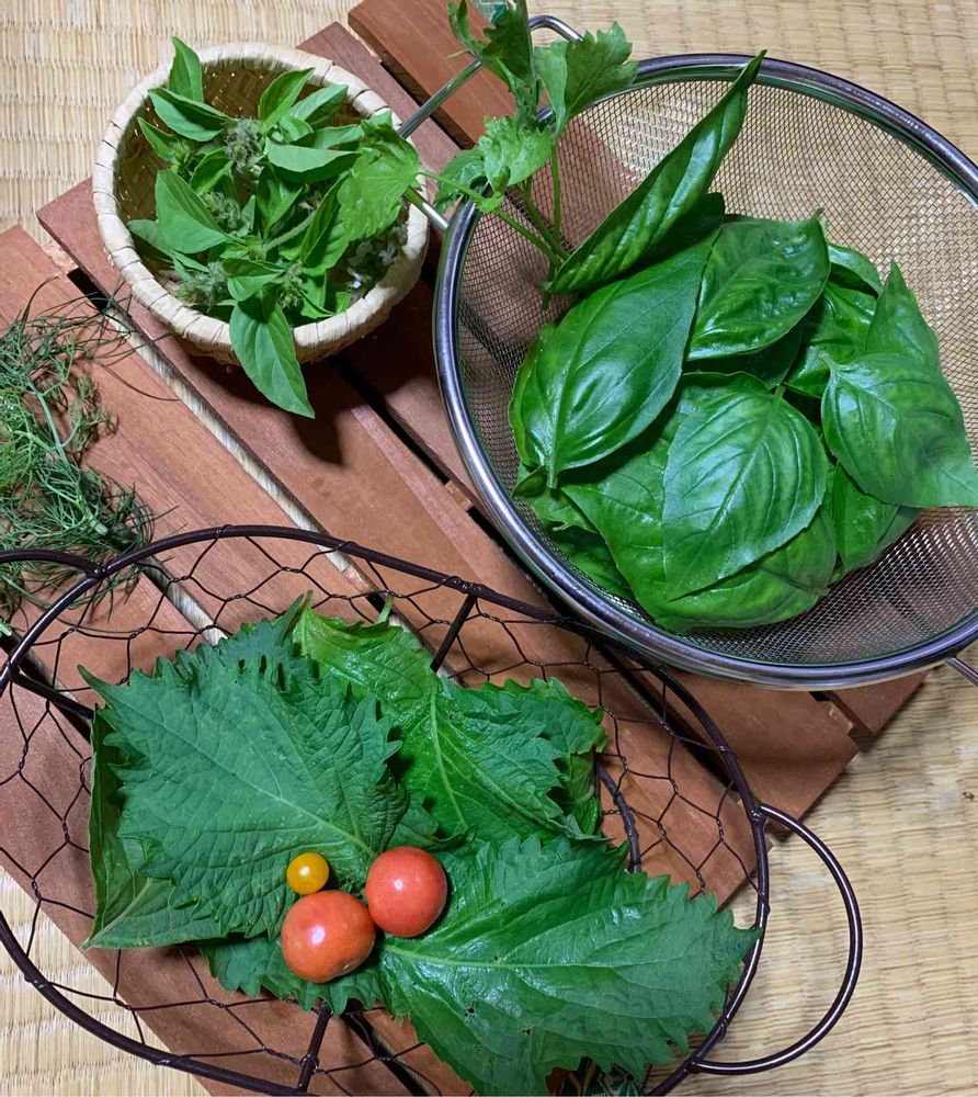 バジル(3・4種類)、レモンバジル、スープセロリ、ディル、しそ、ミニトマト✨