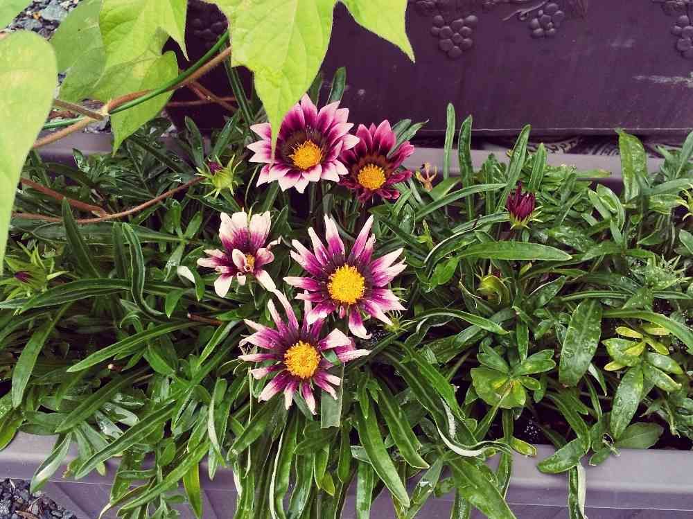 やっと、ガザニアらしく咲いてきました😃虫に食われ、雨にやられ💧頑張ってくれました‼️