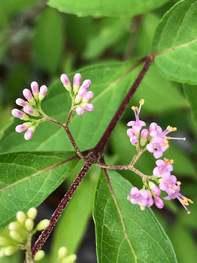 葉っぱの付け根と花の付け根が一緒なら紫式部、