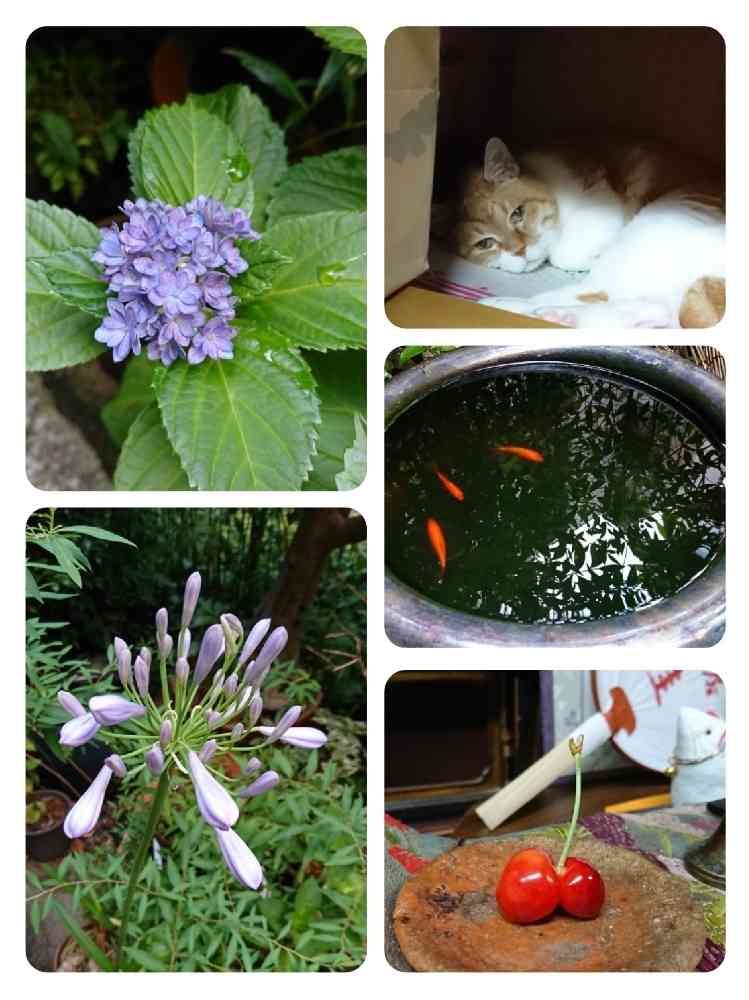 狭い庭に初見の紫陽花とアガパンサス?