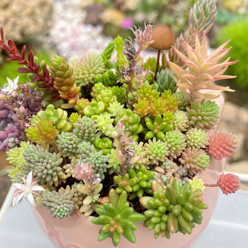 比べてみるとどちらも可愛いけど、私はこのパステルカラーのセダム寄せの色味も好きだわ💗