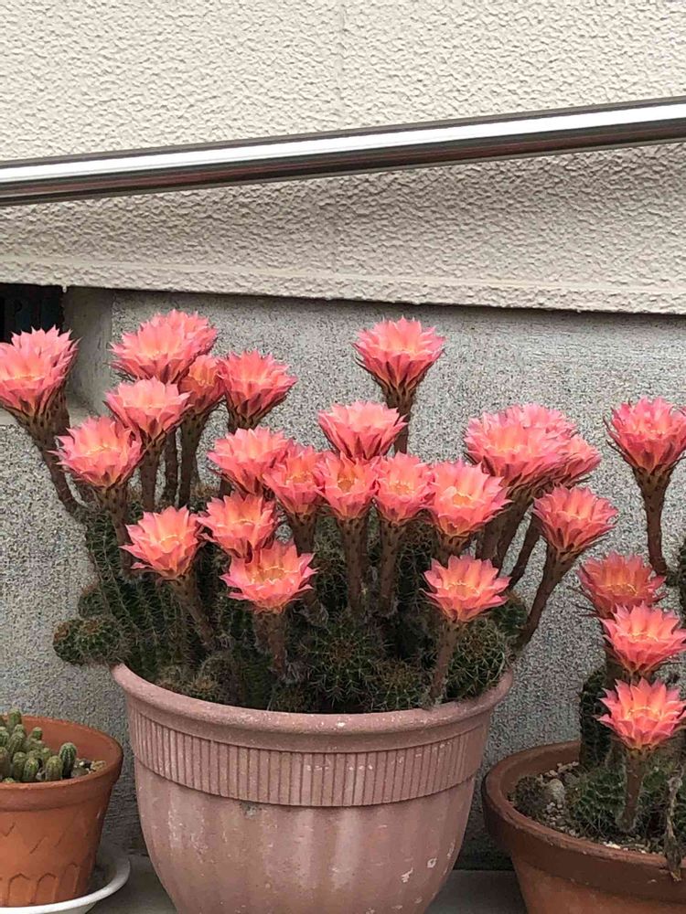 お迎えのお家のサボテンにある日突然こんなに沢山の花開いて…