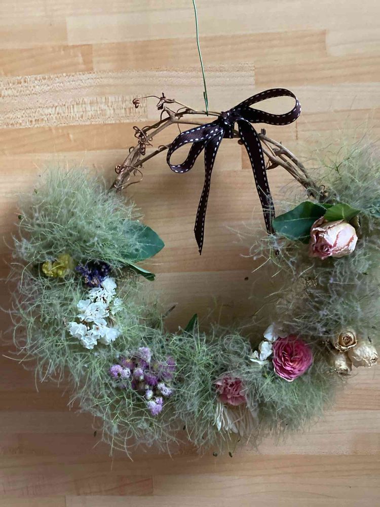 スモークツリーの特徴を生かして、雰囲気のある優しいリースですね💕