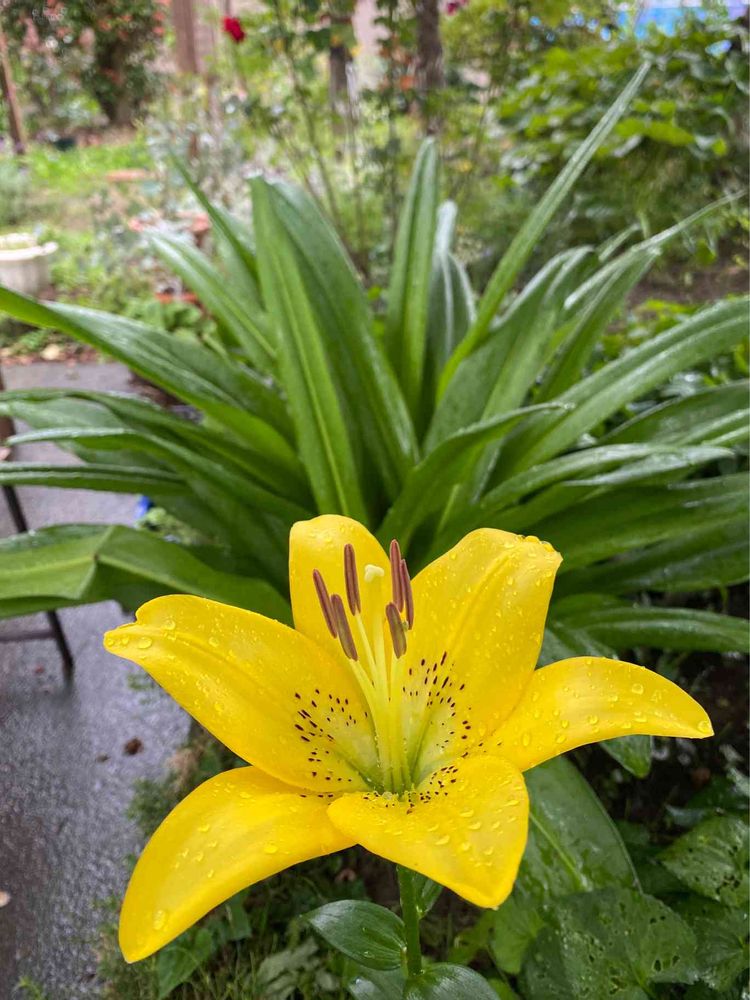 朝目が覚めたら雨の音がして窓の外を見たらユリの花が咲いていました💛