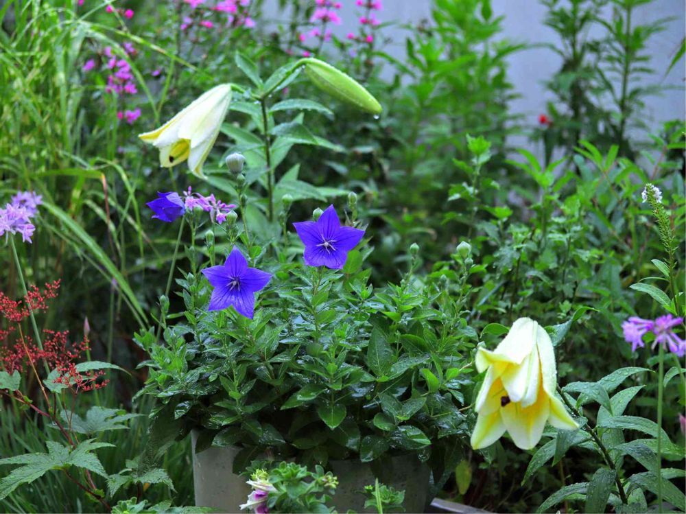 ベランダの ユリの 初花が 開きだしたのに 雨が 降っています 育て初めて もう4年目 鉢植えなので 年々 花数が 少なくなってきました