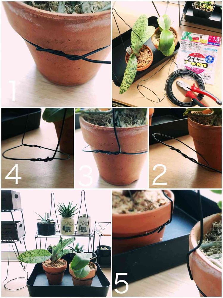 ✨ワイヤーハンガー用の物干し竿に吊るせば鉢と鉢がズレにくいのでとても良いです☺️