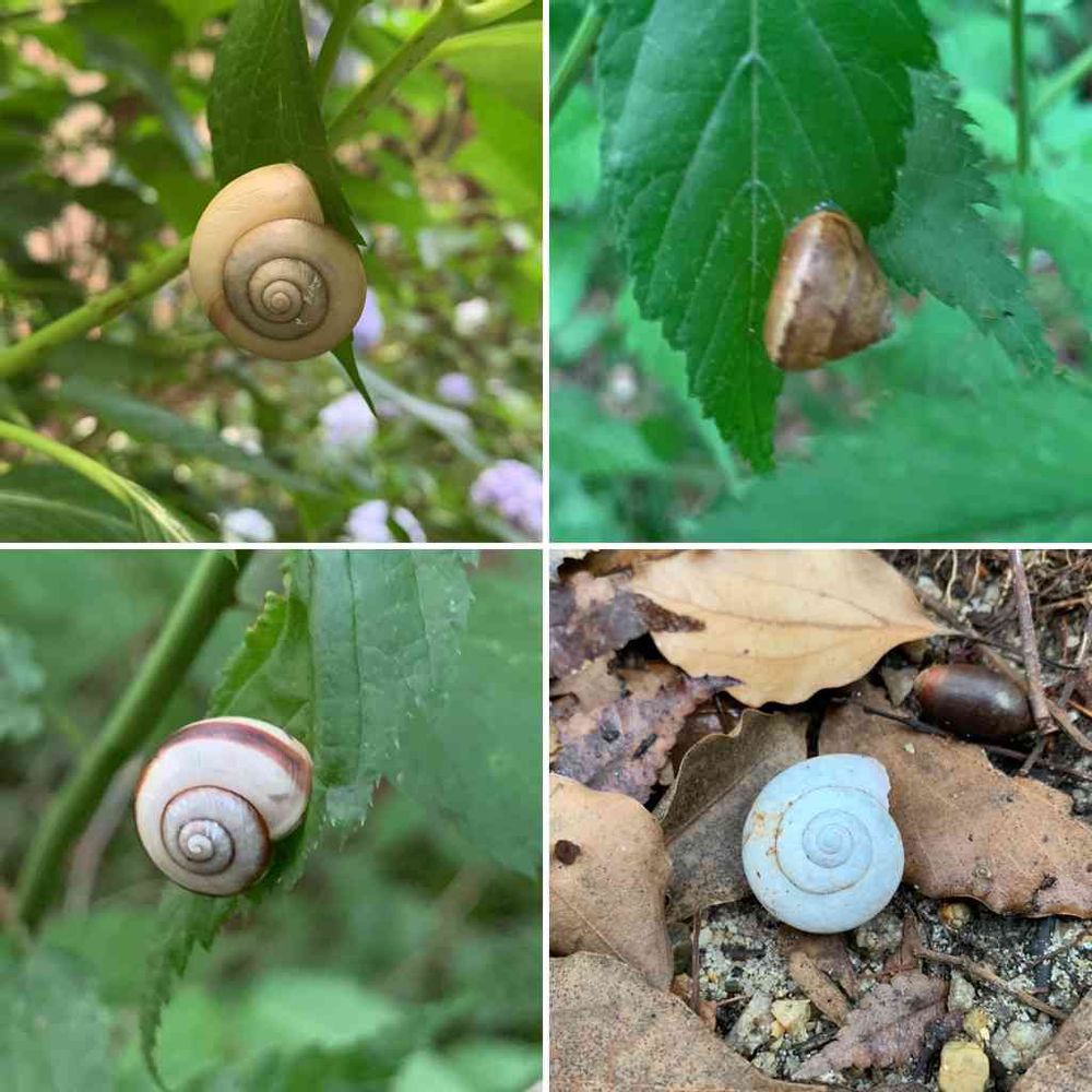 最近はあまり見かけないなぁと思っていましてが、公園散歩をするようになって色々な殻のカタツムリさんに逢えました❣️😄
