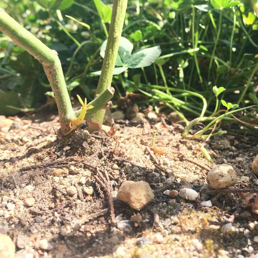 試しに地植えして冬越しさせたミルクブッシュ、やっと新芽が出てきました☺︎