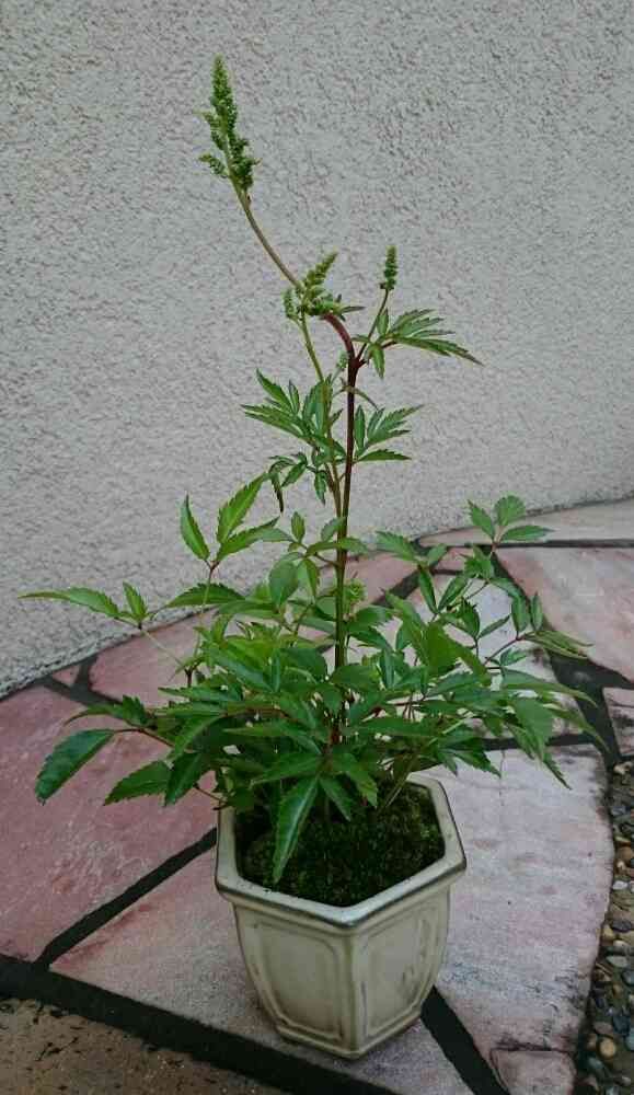 今日の盆栽教室ではもう一つ、アワモリショウマの盆栽を作りました。