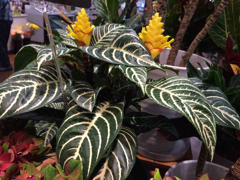 同じく花屋さんで観葉植物を物色した中で、黄色い花と魚の骨のような白いスジの葉っぱが印象的なダニアがなかなか購入しようか迷い中です。(´∀`*)