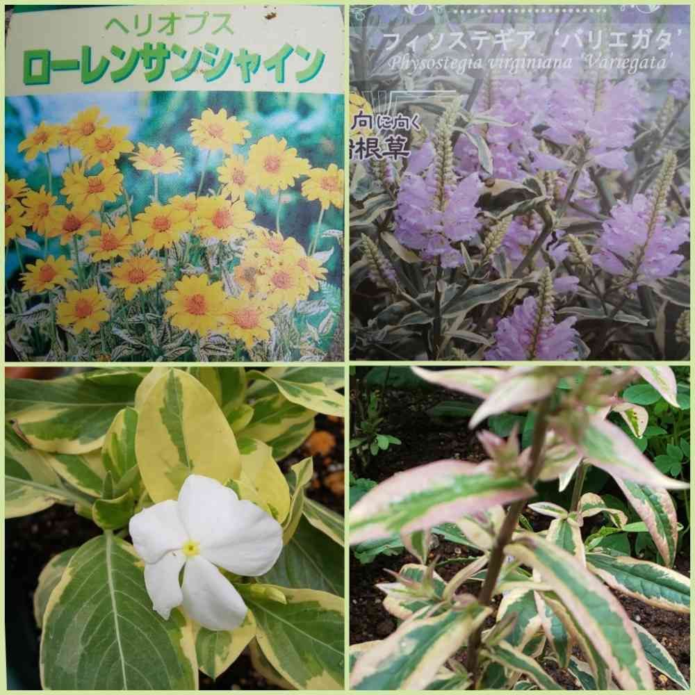 初めて見る斑入りのニチニチソウと家の斑入りとは違う色が咲きそうな宿根フロックス♪