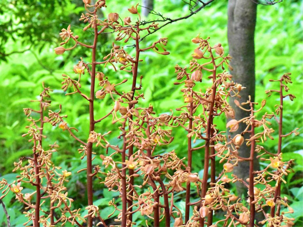 腐生ランと言っても腐葉土とかから栄養をとっている訳ではなく、光合成能力が無く菌類と共生しているものです。