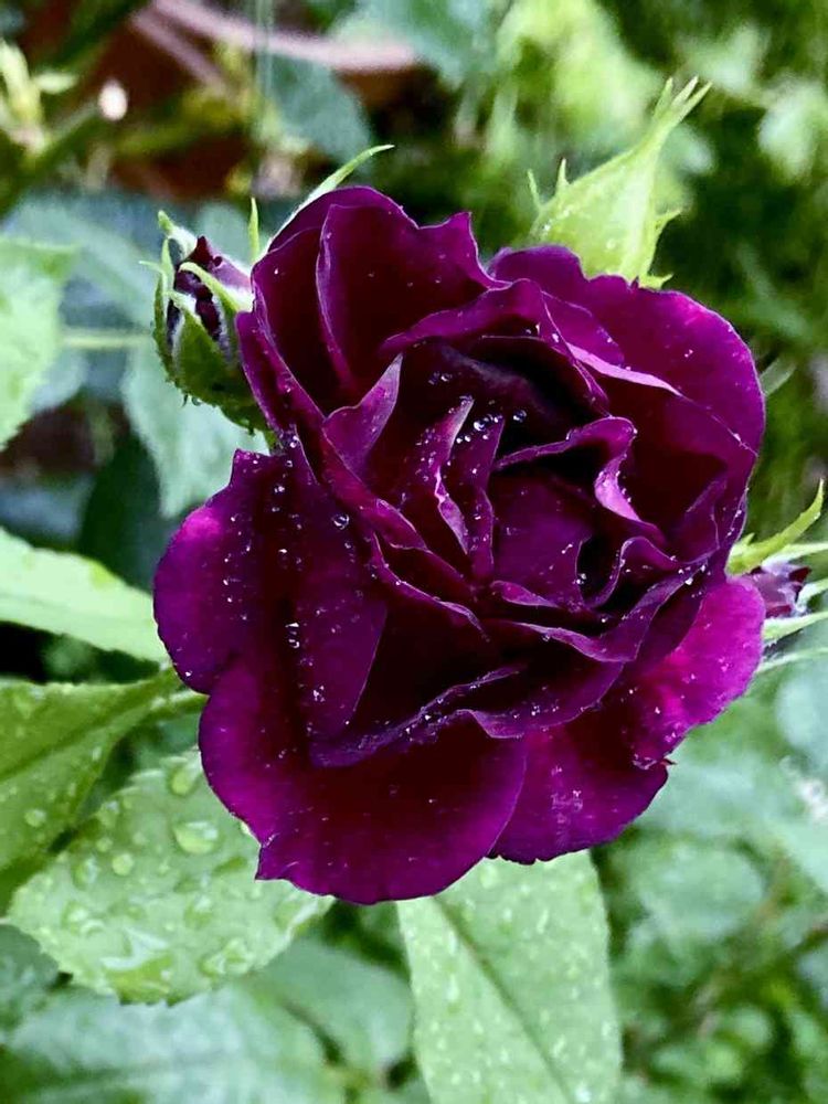 雨に濡れたミッドナイトブルーさん とっても素敵ですね こんなに深いパープルのバラさん 初めてです💜