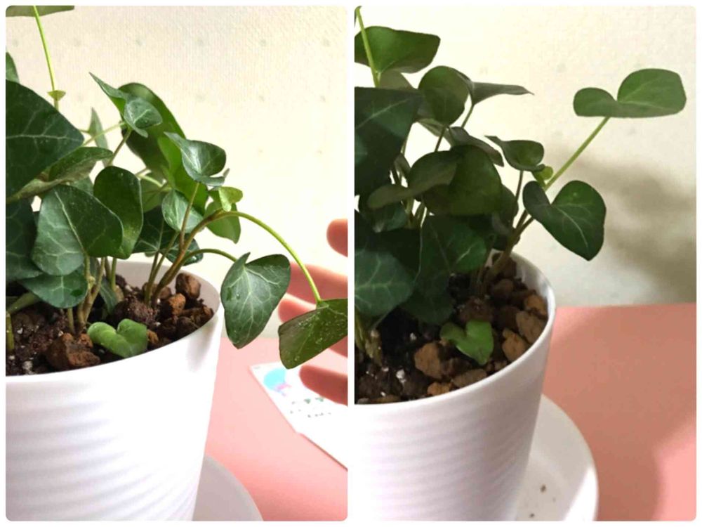 右の方でしょぼんてしとった葉っぱがピンッてなっとるのわかりますか??