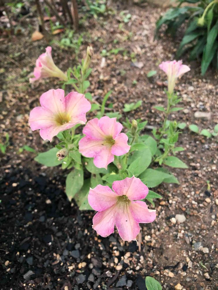 雨の合間に切り戻したペチュニアが一気に開花。残念ながら明日から雨なので、また泥だらけになるでしょう😢