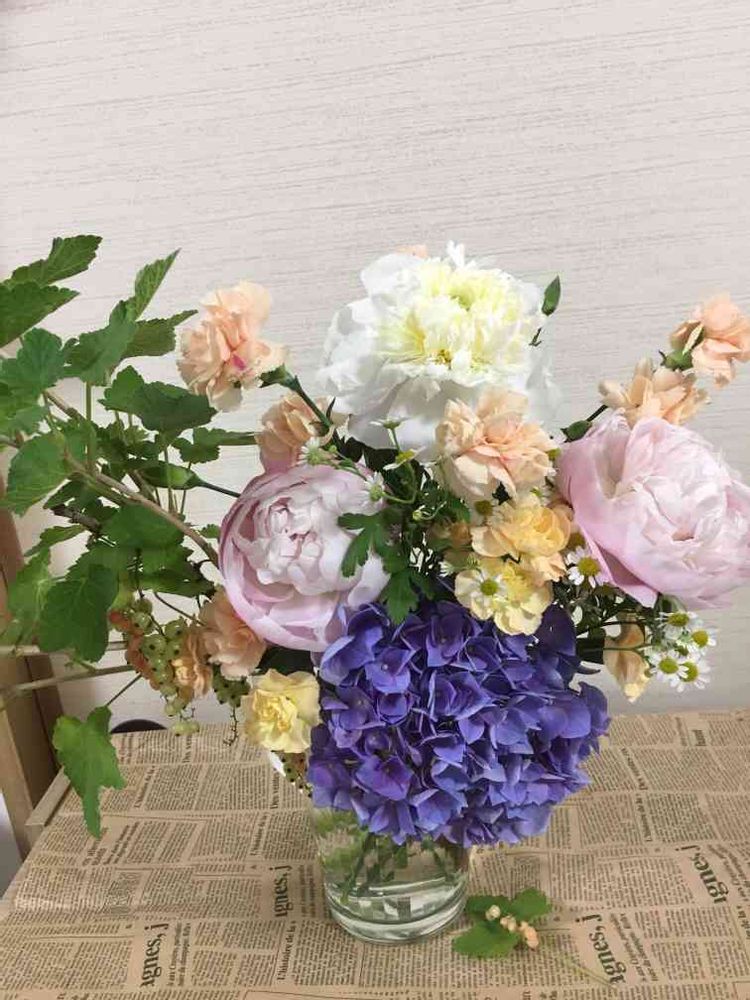 気温が上がって花の持ちが悪くなりましたね😥先週のアレンジメントがダメになっちゃったからつい買っちゃった…今年初物の房スグリに😍