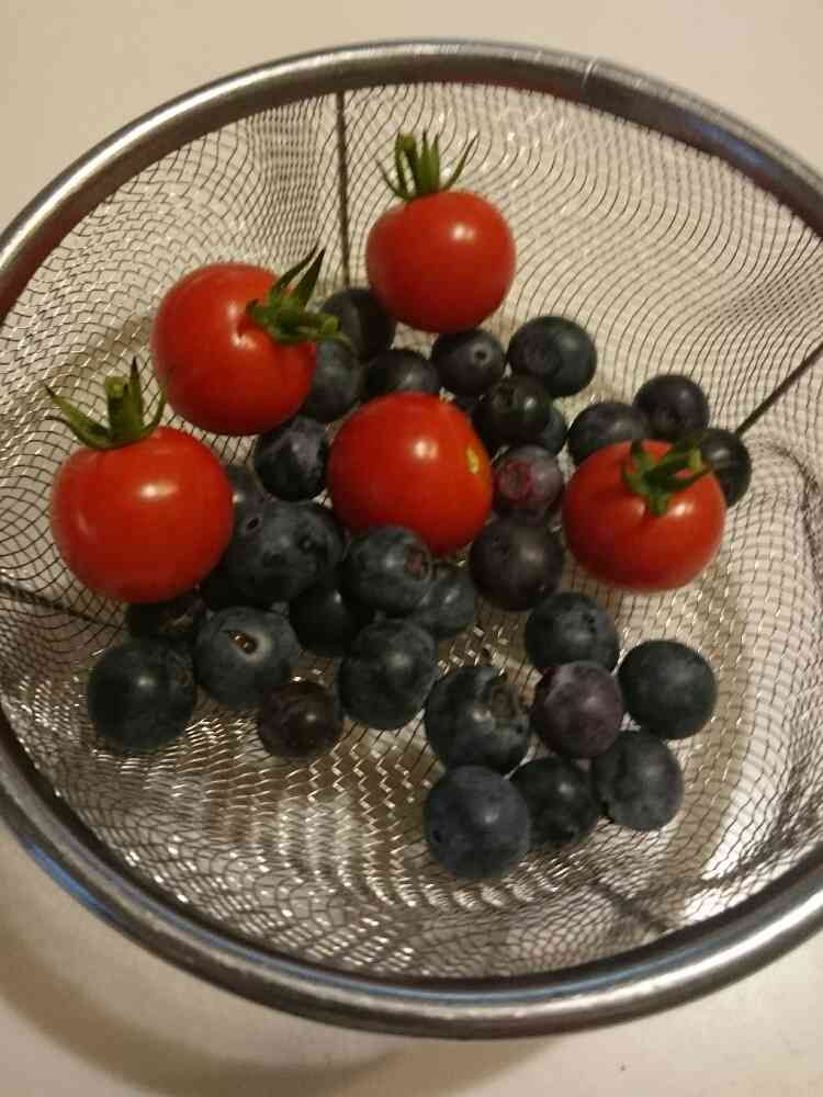 今朝もこあまちゃんとブルーベリーを収穫しました。美味しそうです。