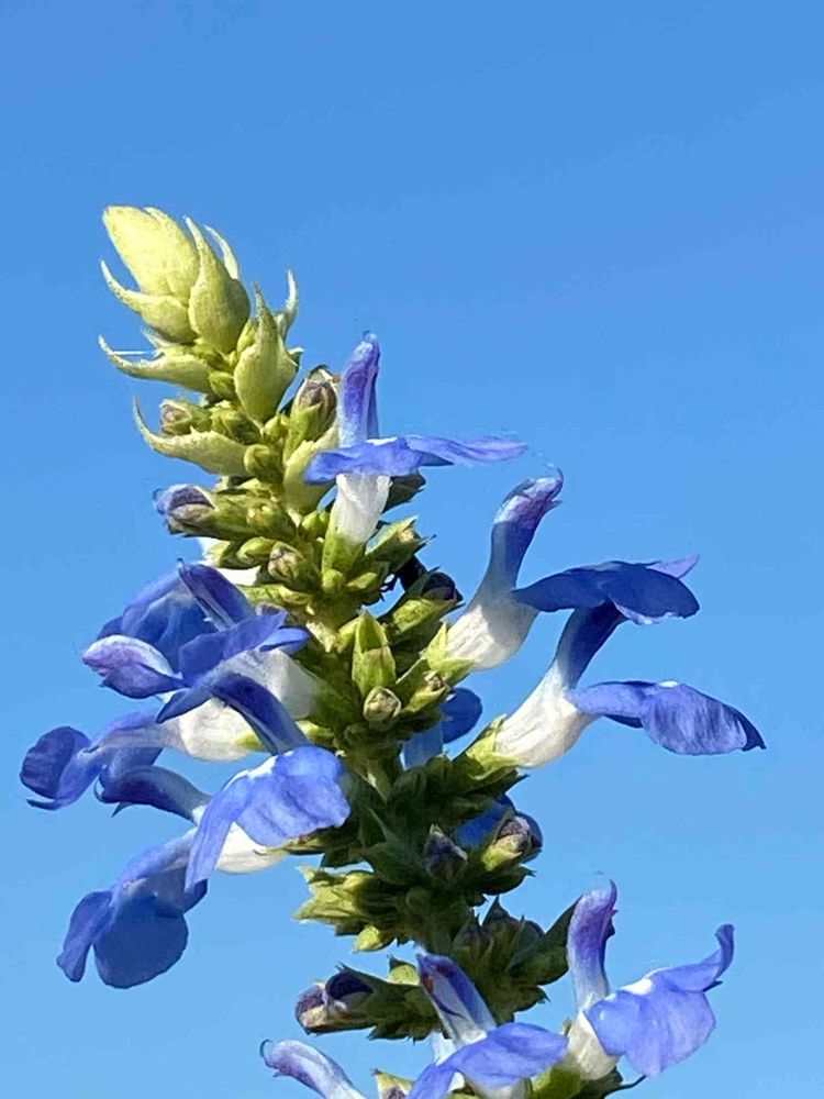 ニコニコさんのエントランス,ボックセージ(サルビアウルギノーサ),青空の中への投稿画像