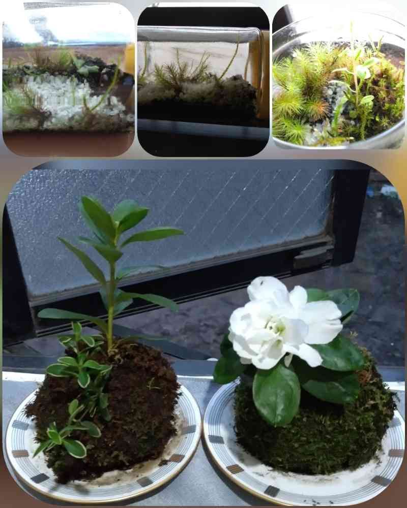 苔玉… アザレアは蒼白く開花 & つげも 生長してる❕