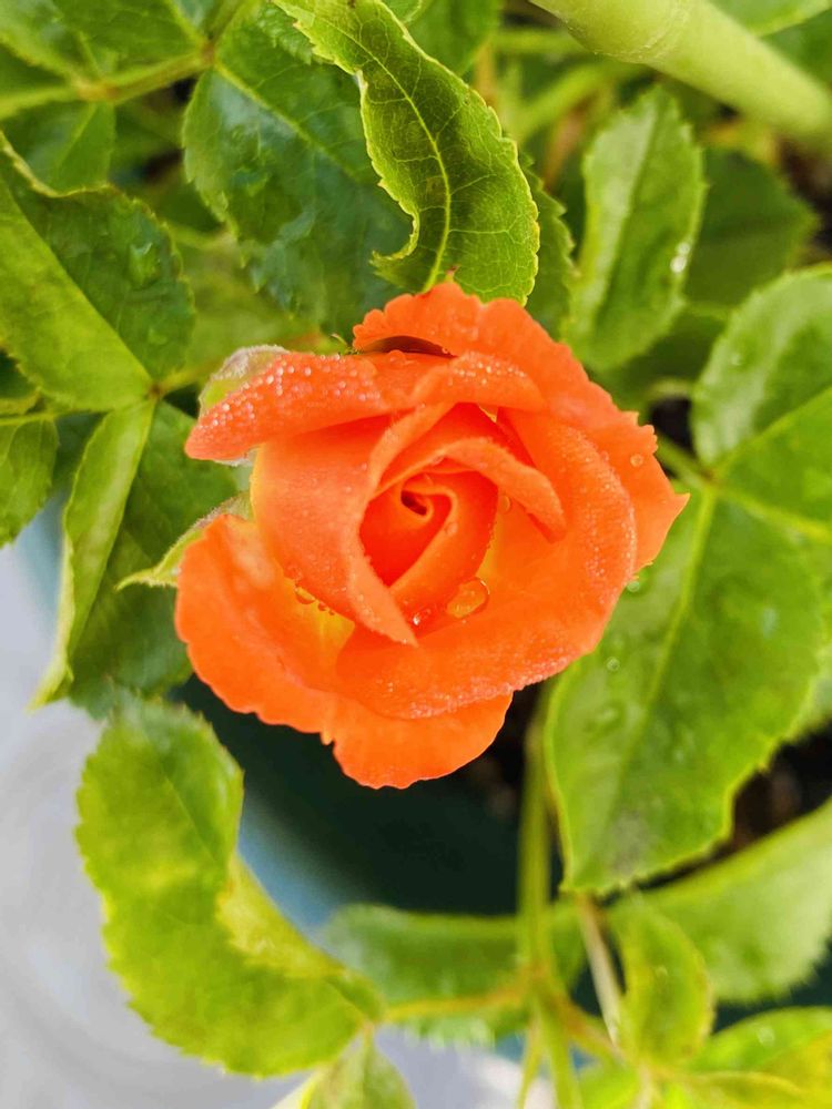 お譲りする約束していましたオレンジのミニ薔薇、開いて来ました🌹
