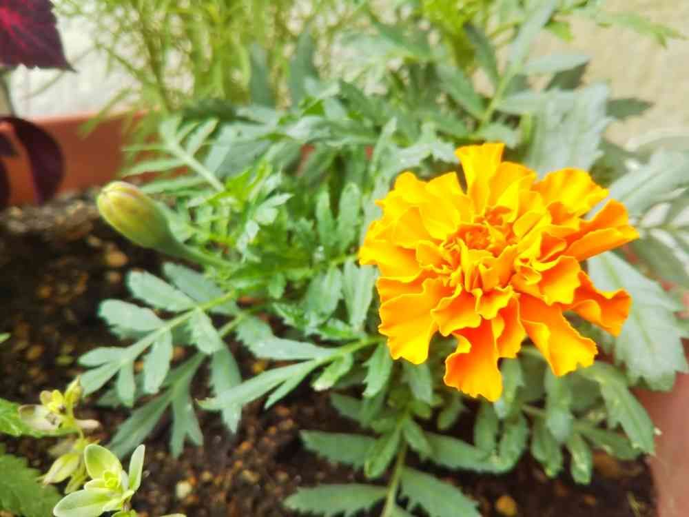 やっと一番花が咲いてホッとしてる種からマリーゴールド初心者🔰