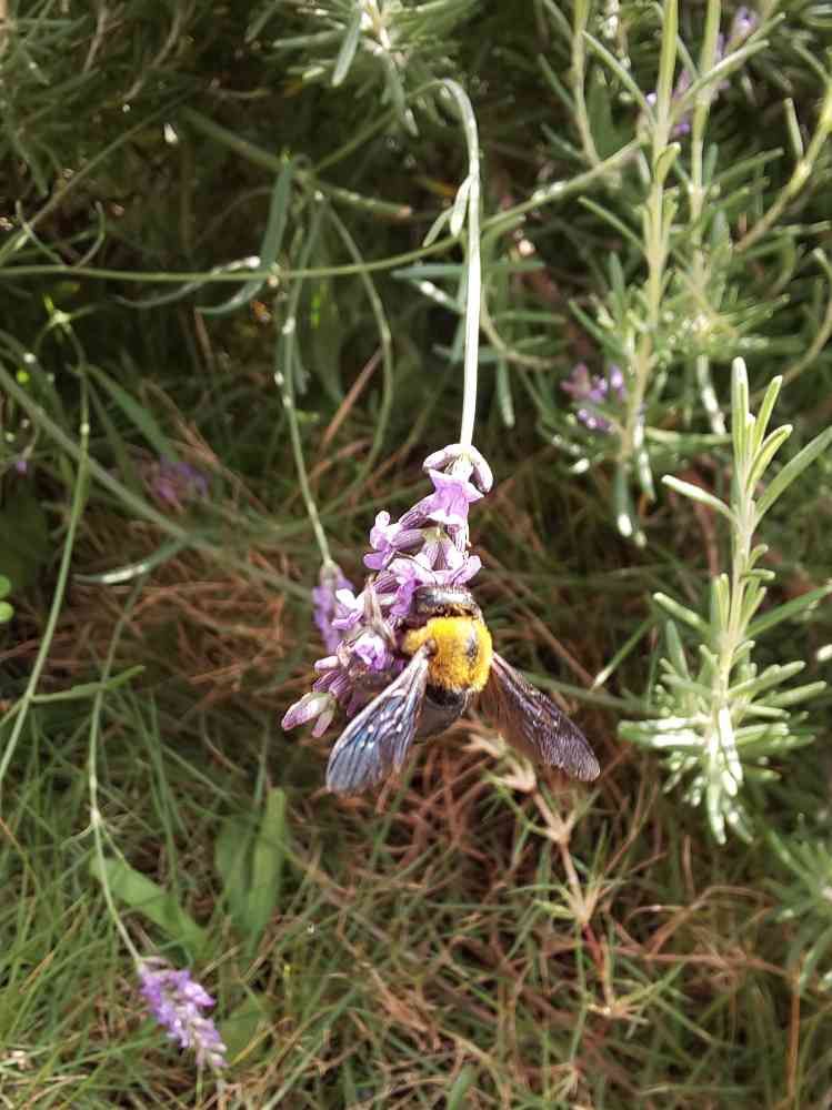 気持ちのよい晴れ間☀️~夢中でラベンダー💜の蜜を吸っている花蜂🐝~折れそう😅