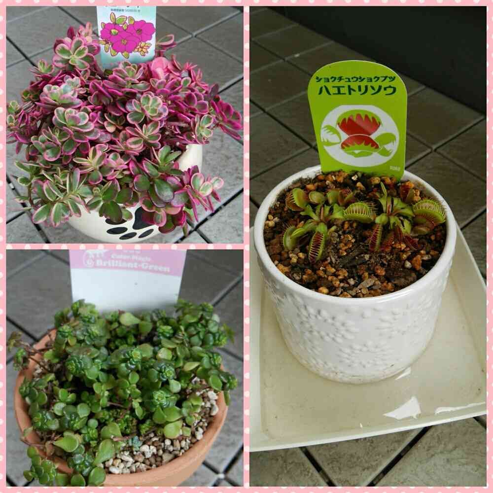 昨日仕事がお休みだったので、狩ってきた子たちをせっせと植え替えしました♪ポーチュラカ色が綺麗です。セダムも枯れずに増えて欲しいな…ハエとり草、今年は失敗しませんように(>人<)