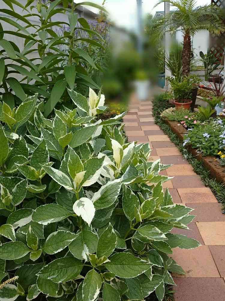 装飾花は白っぽくて斑入りの葉っぱとマッチして涼しげで良いですネ😊🎶