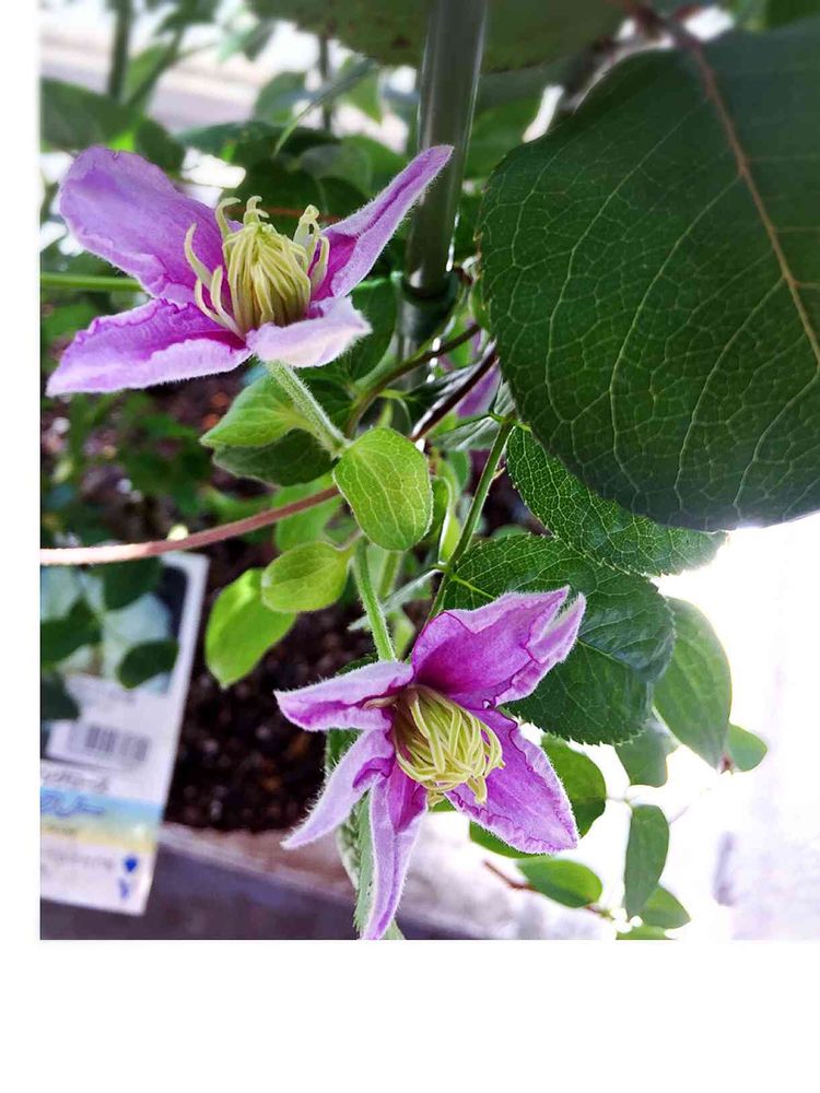 生協で買ったクレマチス✨やっと咲いた🌟けどけど、なぜか小さい😆直径5センチ。シベがとても可愛い💕