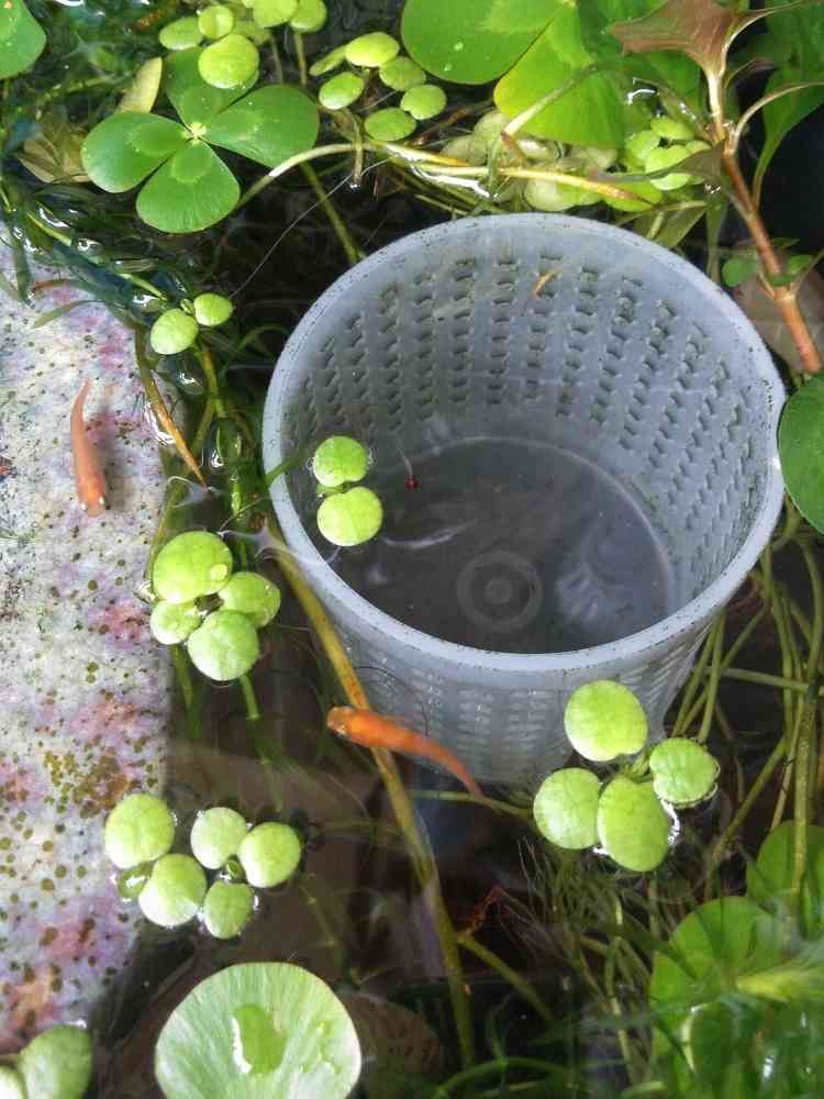 あと、こうやって容器を沈めると、ここにサカマキガイが集まるので、たまに持ち上げて駆除したりします(笑)