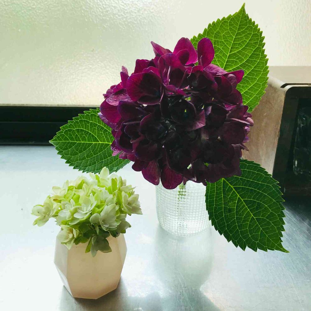 実家で、切り戻したシックな色のアジサイをいただきました。