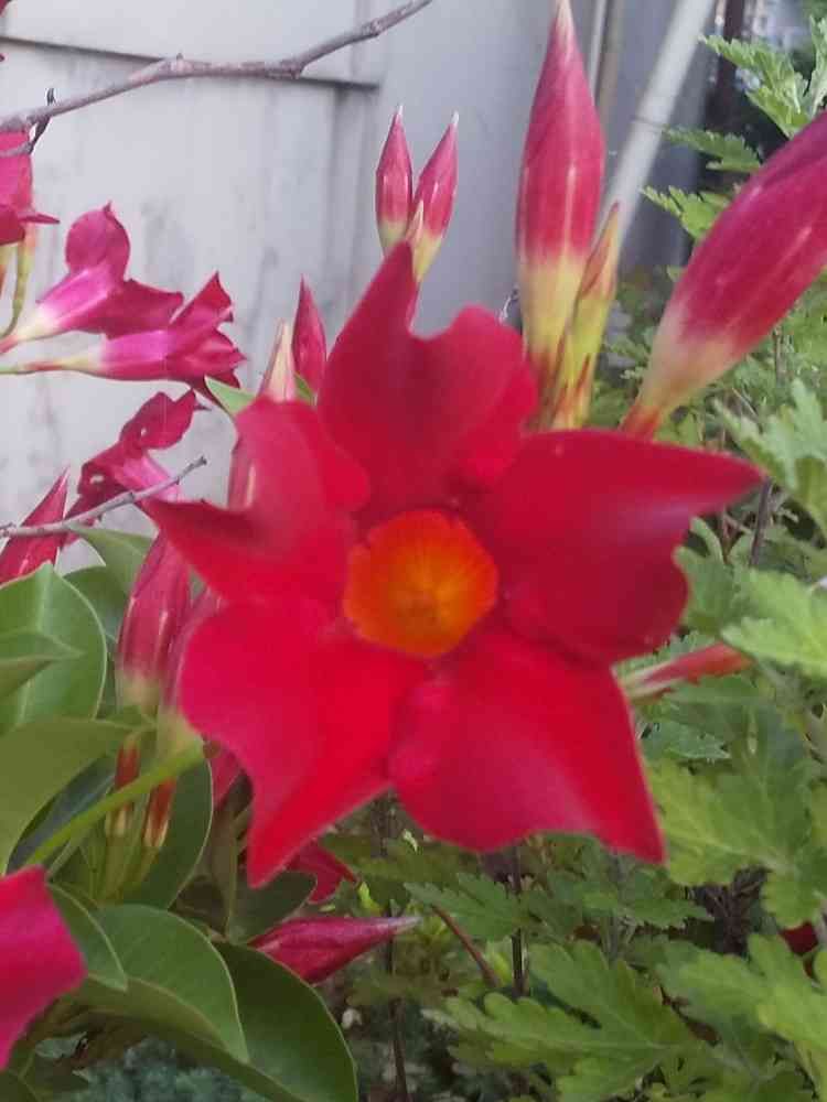 自宅でも咲いているのですが、マンデビラ、だと思います😊